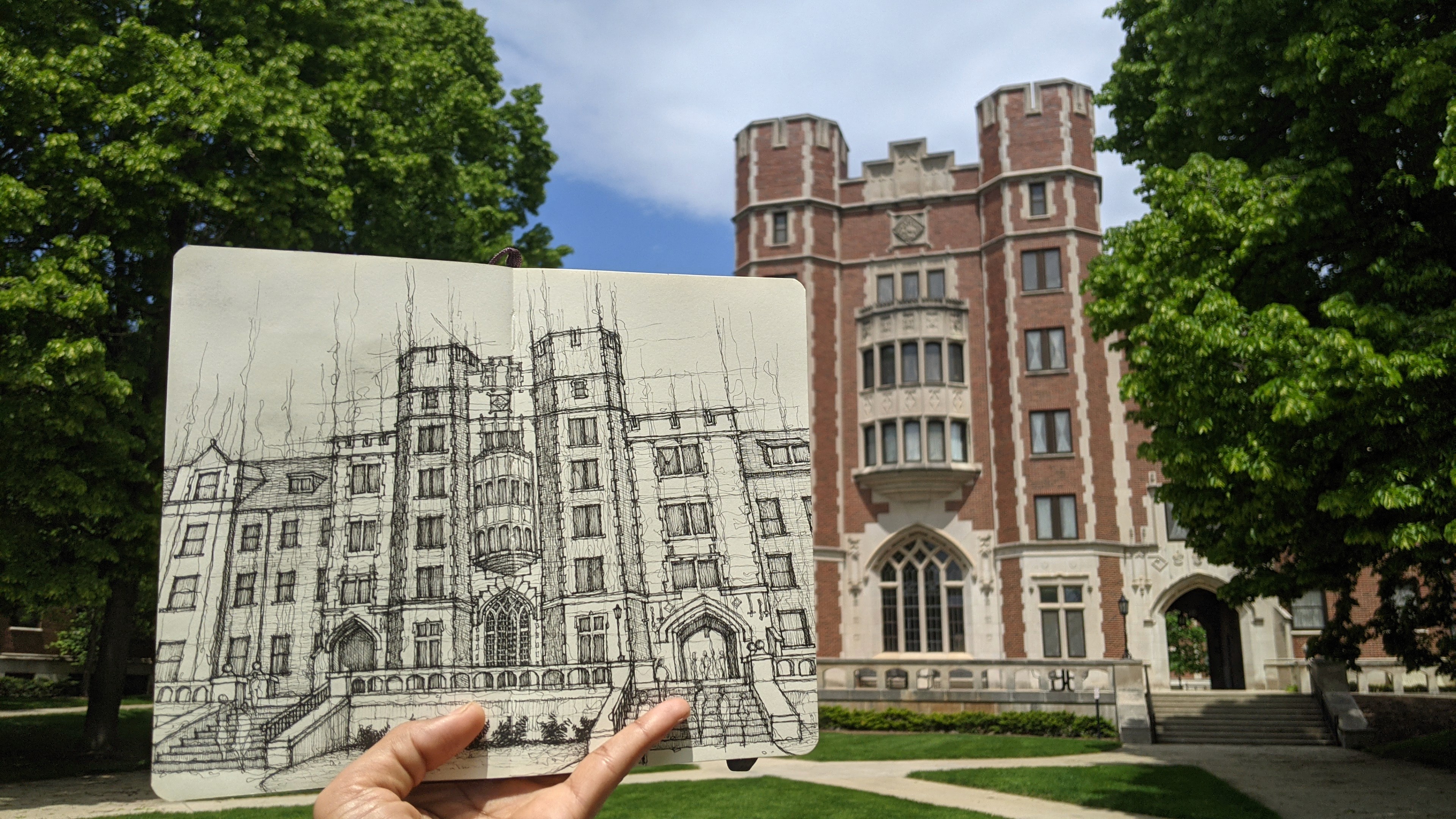 Buildings. Forests. Airports. Bridges. The sketchbook became a place to trace both the built and the natural, side by side.