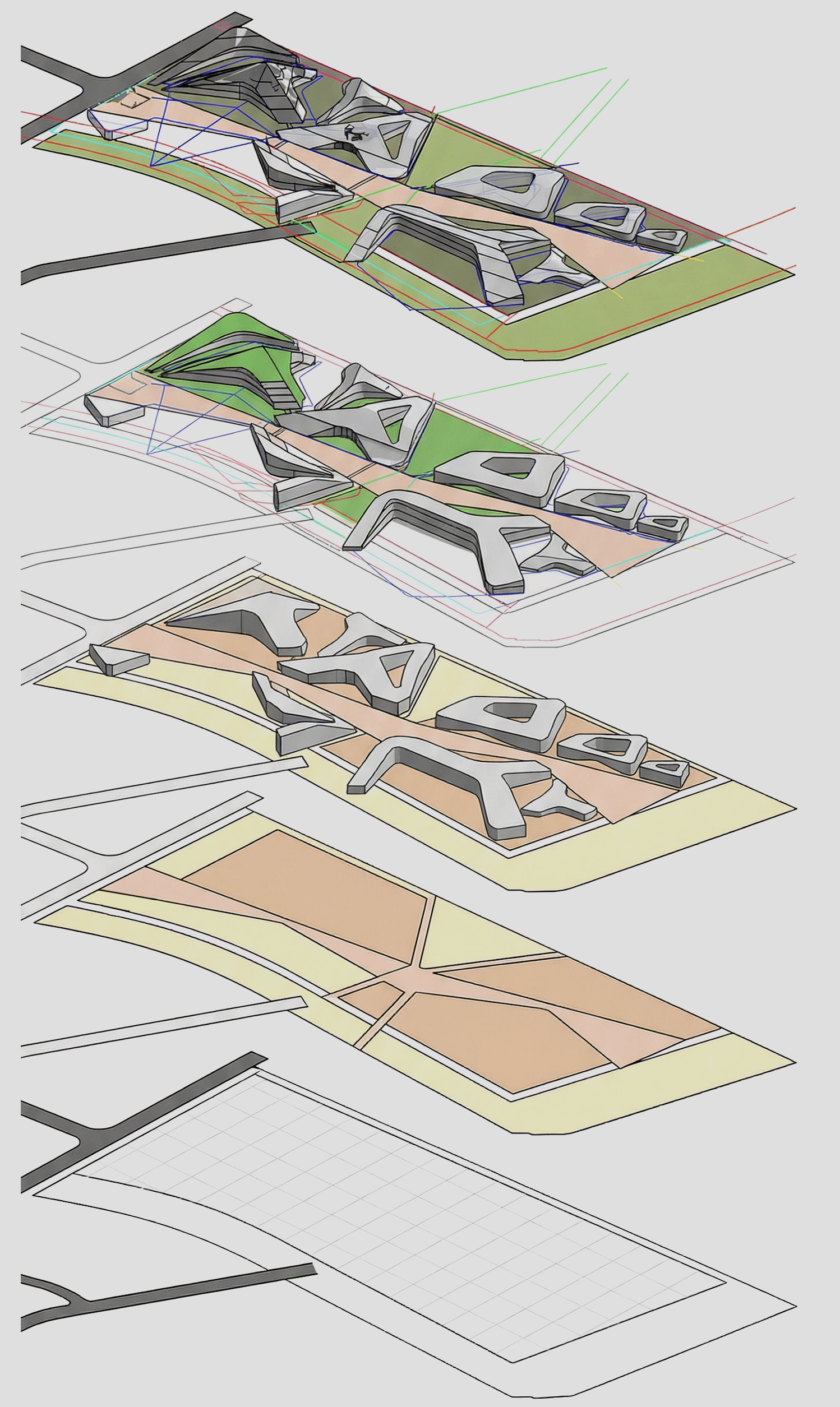 MY APPROACH WAS TO BUILD A MUSEUM CAMPUS THAT READS AS ONE CONTINUOUS LANDSCAPE. I USED COURTS, GARDENS, AND STRAIGHTFORWARD CIRCULATION TO STRUCTURE THE SITE, KEEPING THE ARCHITECTURE MINIMAL AND CLEAR. EACH MUSEUM TAKES ON ITS OWN IDENTITY THROUGH SUBTLE SHIFTS IN FORM AND LIGHT, BUT THE OVERALL EXPERIENCE REMAINS CONNECTED AND COHERENT.
